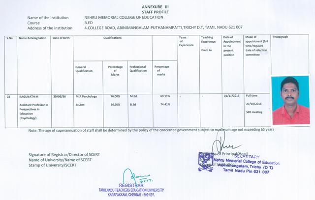 | 4 | Assistant Professor | Mr.R. ANANDKUMAR | M.Sc., M.Ed., M.Phil., | Pedagogy of Biological Science | 9025663845 | m.ed14anandkumar@gmail.com | |